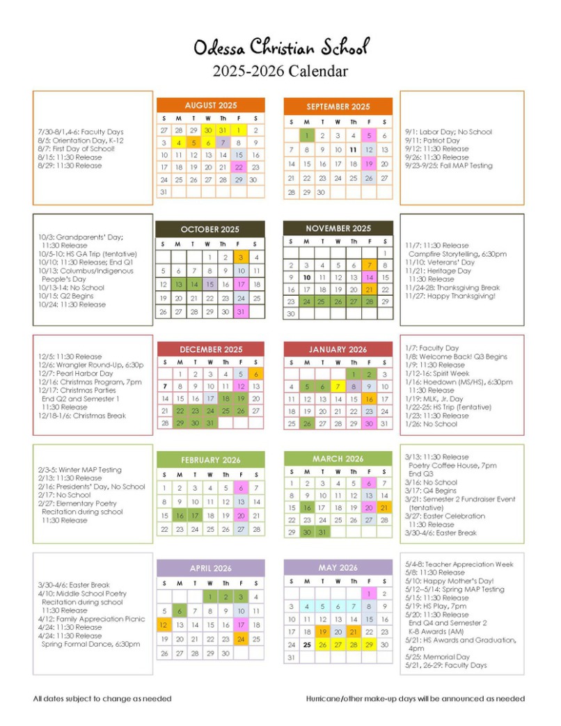 This calendar is subject to change as needed. Below the image, you can view the live OCS Google Calendar and embed into your own, if desired. Note: May not be viewable on mobile devices.